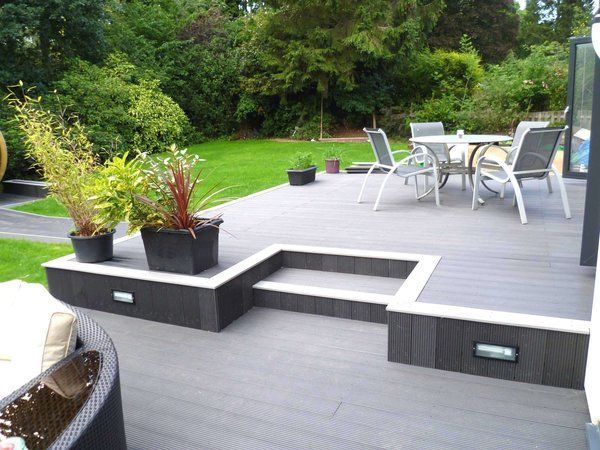 - Kombination aus Holz- & Steinterrasse